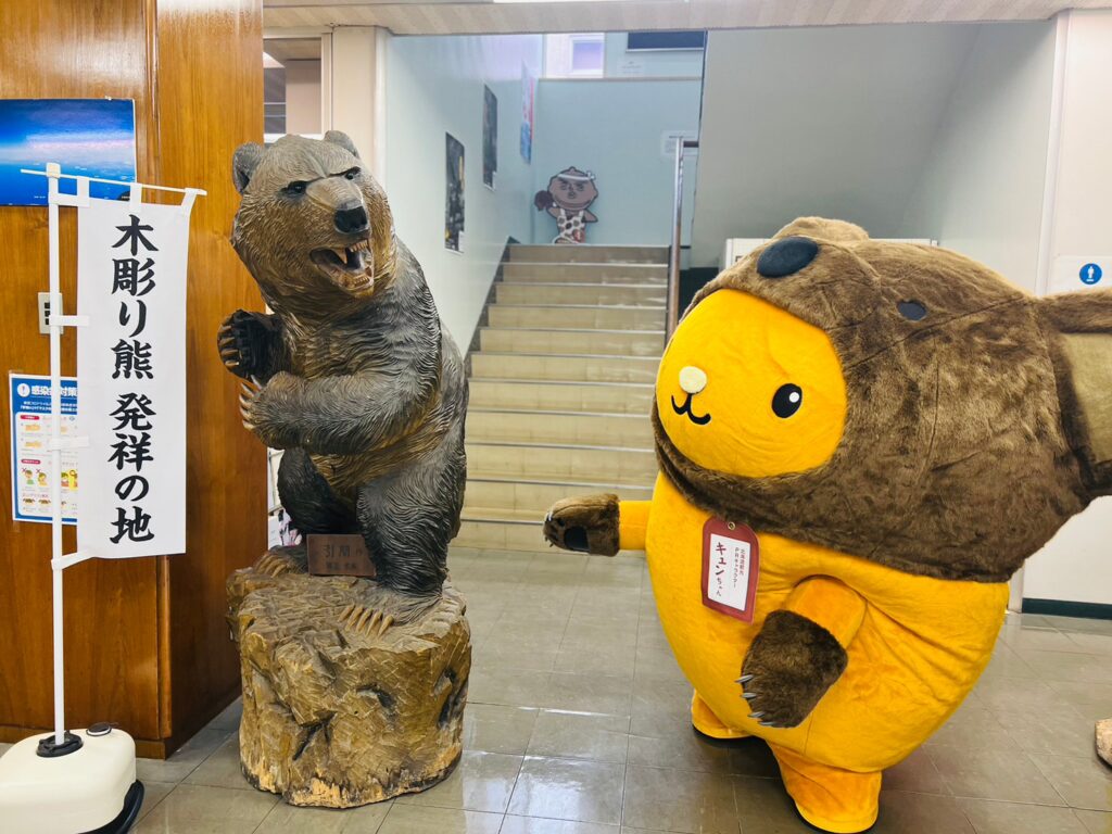 今回は道南のみどころをいっぱい旅する予定だったから、八雲町の名所を1ヵ所だけ「木彫り熊資料館」を案内してもらいました!!