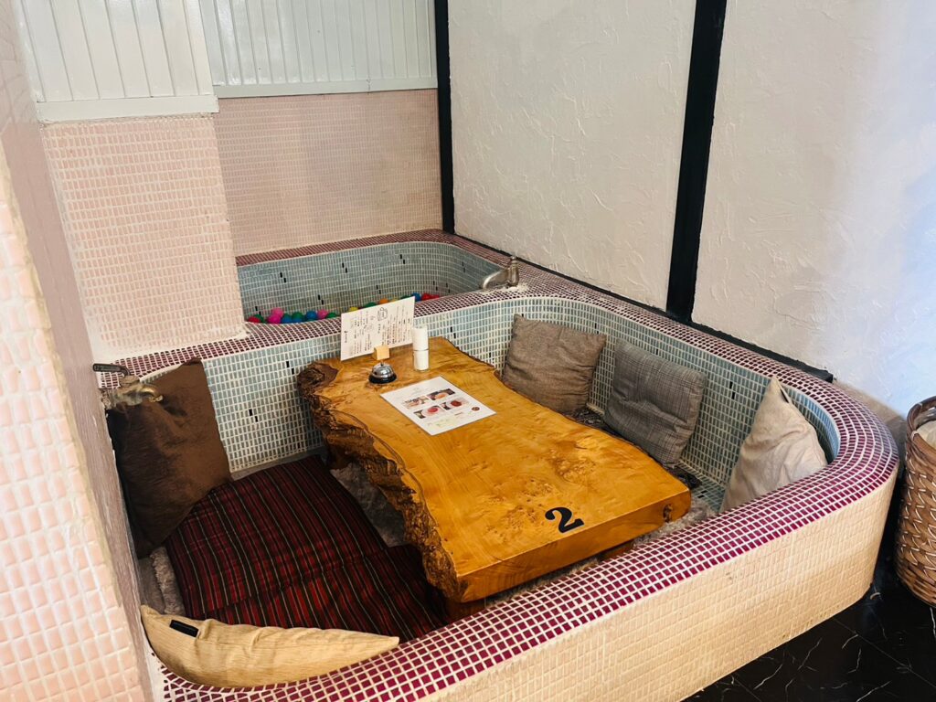 見て見て~✨浴室の中でお食事が出来るよ~♡とっても貴重な体験で思わず写真を撮りたくなるー!!
