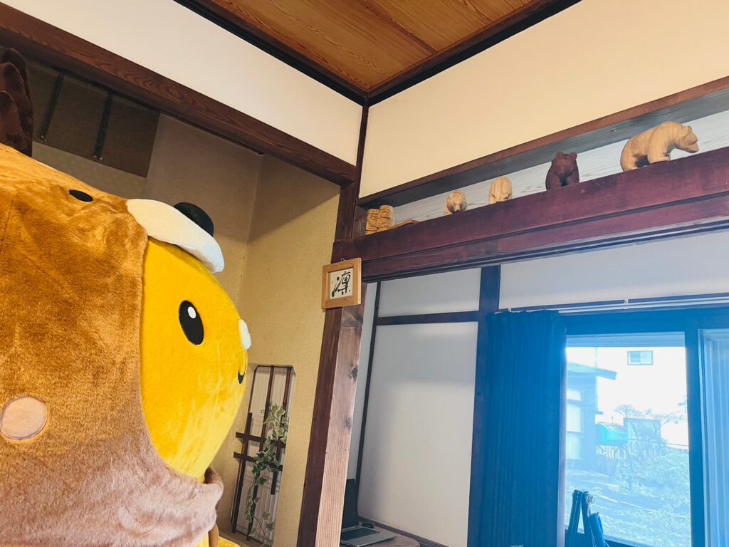 ゲストハウスには色んな種類の”木彫りの熊”がっ!!さすが木彫りの熊の発祥の地・八雲なのです✨