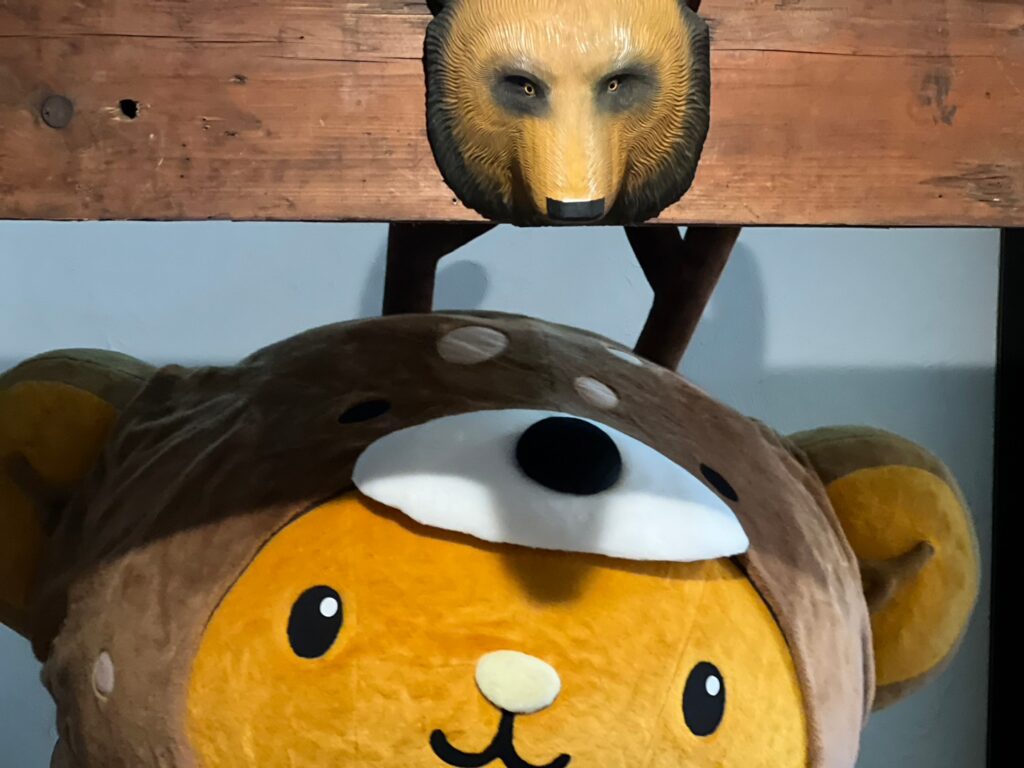 おっきい熊さん達がお出迎え!キュンちゃんも”熊”のかぶり物にお着換えしましたっ♪